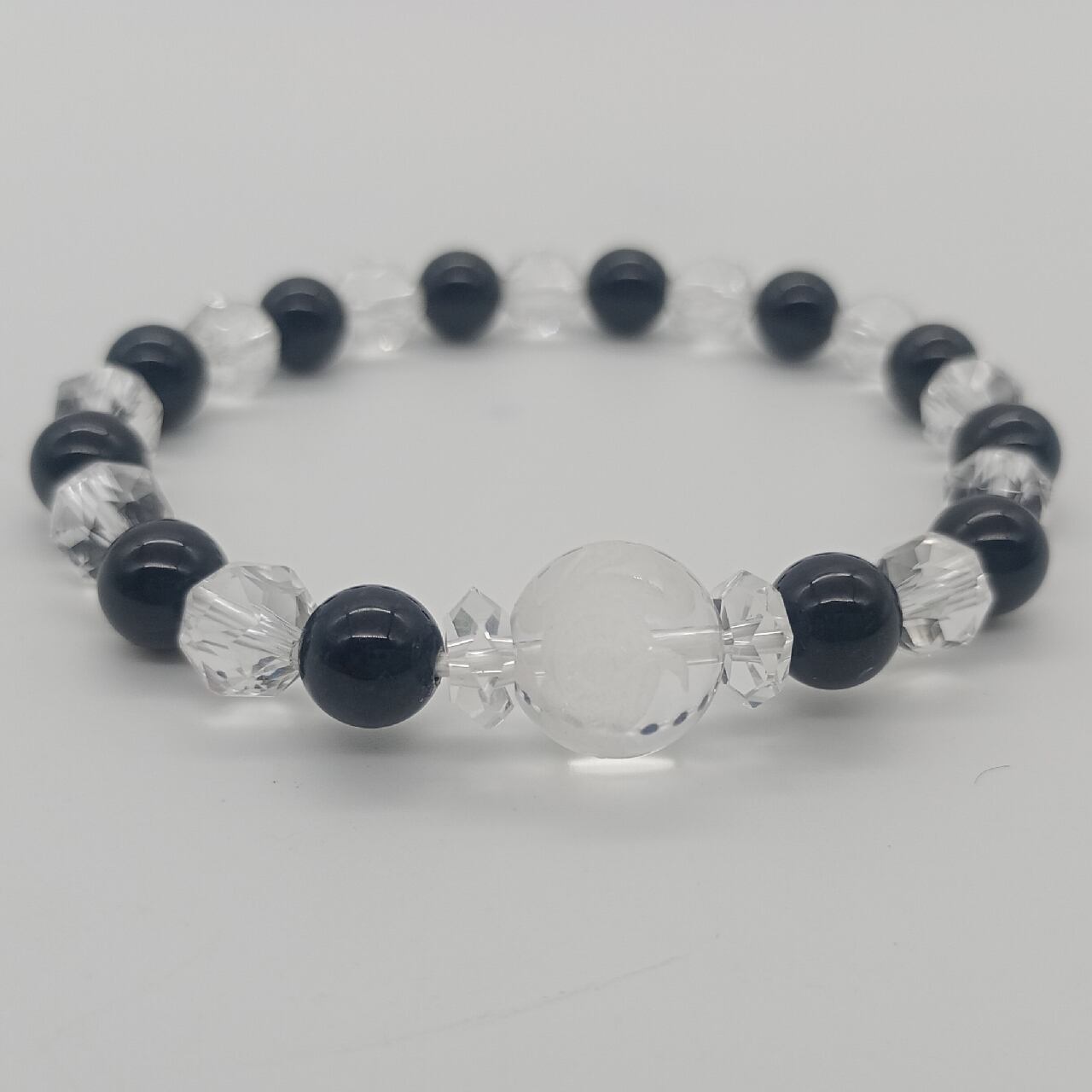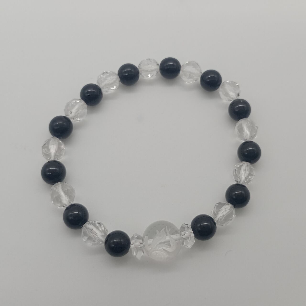 サヌカイトブレスレット玄武模様12mm 8mm+カットクリスタル